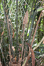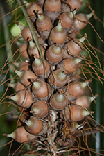 | Field notes | Solitary, acaulescent, 8-10 erect lvs, to 4 m long, with many narrow pinnae inserted regularly along rachis. Infructescence erect 1 m long, peduncle green and spiny; rachis occupying 1/3 - 1/4 of inflorescense length. Rachillae many fruits brown at base, green apically (description made from photographs) |