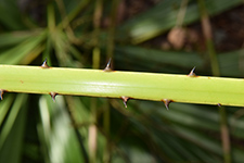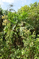 | Field notes | Three stems together; each stem 5 cm diam, to 2.5 m tall. Crown of 16 lvs; sheath fibrous; petiole to 1 (+) m; spiny along margin; blade palmate 140 cm diam, segments c. 30-35, 70 cm long. Inflorrescence interfoliar to 3m long. Erect, rachis naked, 4-7 lateral inflorescence |