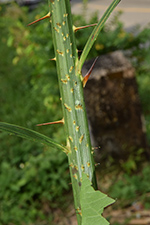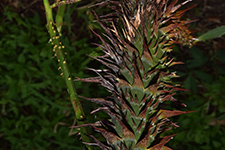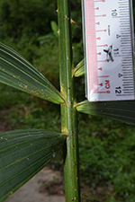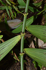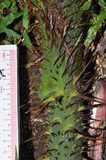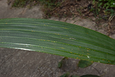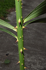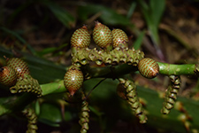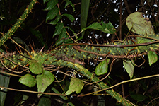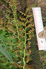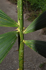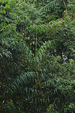 | Field notes | Climber with very long spines on leaf sheath petiole, and rachis. Petiole ca. 60 cm, rachis 2-3 m long with 17 leaflets per side, irregular distr. along rachis. Basal pinnae 35x4 cm. Middle pinnae 50-60 x 5 cm. Rachis extended to spiny cirrhus. Infl. ca 80 cm long with 6 rachillae, rachillae 20-30 cm long |