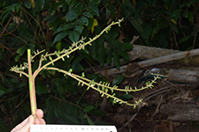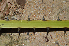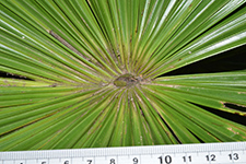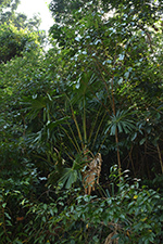 | Field notes | Stem 1.5m tall. Crown of 20 lvs.; petiole 1.8m spiny margin; blade circular with 24 segments, each one c. 60 cm. Infructescence interfolia, ca. 2 m with 6 primary branches |