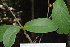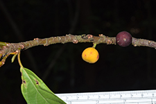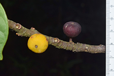 Small tree 5m tall, 7 cm diam. Fruits near end of branches. Most fruits yellow, when mature maroon colored