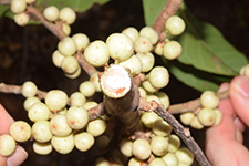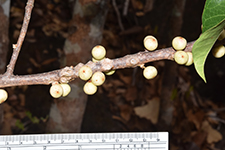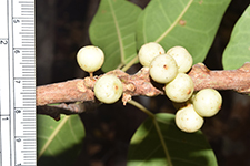 4 m tall shrub on rocks near waterfall, Sycomia white