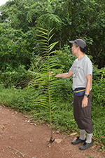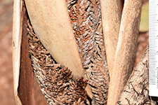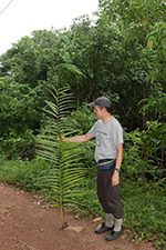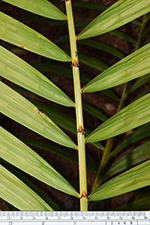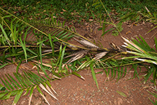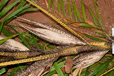 | Field notes | Plectocumia type palm liana to 10 m long, fresh lvs along apical 6 m, Leaf sheaths with many brown/black flat spines that point down or are perpenducular, longest spines to 3 cm, petiole 40-50 cm long, lamina 130x80 cm, pinnae ca. 32 per side. Apical cirrhus 70 cm. Inflorescences from leafsheaths to 50 cm long incl spathes which are very spiny. Inflorescences smaller towards top of shoot |