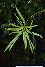 Locality Koh Chang. Forest trail crossing the island from Tan Mayon to Klung Phlu waterfall. Descending towards Klung Phlu river on hills, evergreen forest