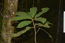 Koh Chang. Forest trail crossing the island from Tan Mayon to Klung Phlu waterfall. Descending towards Klung Phlu river on hills, evergreen forest