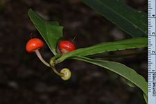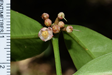 Shrub 90 cm tall. Corolla pink. Mature fruits red.