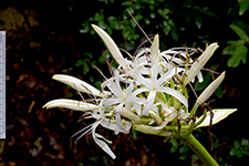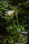 | Field notes | On sandy coast, stem 10 cm diameter, 40 cm tall; leaves 15-20 in rosette; to 56-100 cm, 6-11 cm wide; peduncle 2.5x72 cm, bracts 2, 4x 10 cm; flowers in umbel, 35; pedicel 10 cm long; tepals 1x8 cm, white; 6 stamens protruding purple in upper half. |