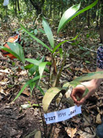 | Field notes | Juvenile. Petiole 48cm long, green-brown; rachis 22cm; lamina 40 x 48cm; pinnae 4 per side, basal 23cm, middle 27cm, apical 22cm. Transect HB327-SU41 |
