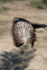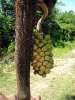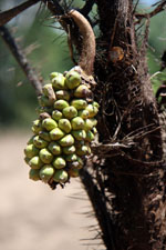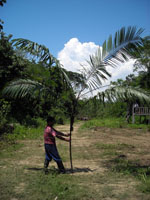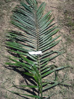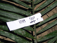 | Field notes | Colonial understory palm. Stem 4m long, 4cm thick; spines 5cm long, black. Leaves 7 per stem; sheath 15cm, open; petiole 50cm, green; rachis 65cm; lamina 196 x 90cm; pinnae 44 per side, basal 50cm, middle 54cm, apical 30cm. Inflorescence-rachis 13cm long. Transect HB328-wayin |