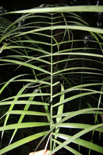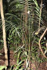 | Field notes | Juvenile erect understory palm. Stem 0.5m long, 2.5cm thick. Leaves 4 per stem; sheath 11cm; petiole 87cm, round, green; rachis 60cm; lamina 67 x 60cm; pinnae 20 per side, basal 23cm, middle 30cm, apical 18cm. Sterile voucher. Transect HB330-SU20 |