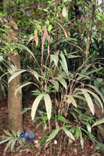 | Field notes | Cespitose understory palm. Stem 1m long, 1cm thick. Leaves 4 per stem; sheath 7cm, closed; petiole 27cm; rachis 16cm; lamina 45 x 23cm, simple. Inflorescence infrafoliar. Transect HB332-SU30. |
