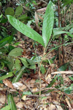 | Field notes | Understory palm. Stem 0.7m long, 1cm thick. Leaves 4 per stem; sheath 9cm, closed; petiole 19cm, green; rachis 8cm; lamina 35 x 38cm, entire. Inflorescence infrafoliar; prophyll 2cm; peduncular bract 9cm, woody, smooth, brown; peduncle 3.5cm long, 3cm thick, smooth; rachis 4cm long, unbranched; flowers sessile. Transect HB333-SU91. |