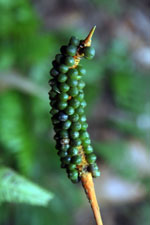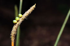 | Field notes | Acaulescent rosette-palm. Leaves 9 per rosette; sheath 19cm, open; petiole 56cm, green; rachis 43cm; lamina 60 x 44cm; pinnae 4 per side, basal 27cm, middle 30cm, apical 23cm. Prophyll 8cm long; peduncular bract 18cm long, soft, brown, inserted at base; peduncle 77cm long, 0.4cm thick, smooth; rachis 11cm long 1cm thick, unbranched; flowers sunken.Transect HB334-SU44. |