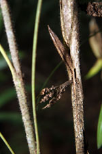 | Field notes | Cespitose palm. Stem 1.5m long. Leaf-sheath 15cm, closed; petiole 17cm, green; rachis 24cm; lamina 42 x 35cm; pinnae 3 per side, hairy, basal 21cm, middle 19cm, apical 27cm. Inflorescence infrafoliar; prophyll 4cm long; peduncular bract 10cm long, spiny, brown, inserted at the base; peduncle 5cm long, 0.5cm thick, spiny; rachis 0.5cm long, branched to 1st order; rachillae 4, 4cm long; flowers sessile. Transect HB334-SU99. |