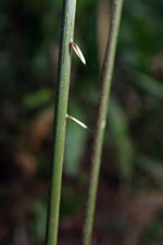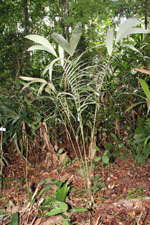 | Field notes | Acaulescent, juvenile palm. Leaves 6 per stem; sheath 19cm, open; petiole 144cm, round, green; rachis 70cm; lamina 104 x 92cm; pinnae 18 per side, basal 53cm, middle 44cm, apical 36cm. Sterile voucher. Transect HB335-SU31. |
