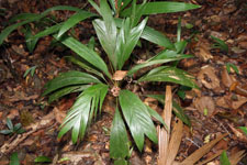 | Field notes | Solitary palm. Stem 0.2m long, 1cm. Leaves 11 per stem; sheath 4cm long, open; petiole 13cm, margined, green; rachis 20cm; lamina 33 x 11cm. Sterile voucher. Transect HB335-SU56 |