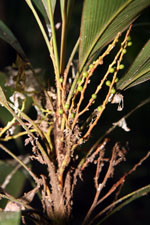 | Field notes | Solitary palm. Stem 0.5m long, 1cm thick. Leaves 20; sheath 9cm, open; petiole 20cm, margined, green; rachis 38cm; lamina 47 x 12cm, entire. Transect HB335-SU87. |