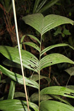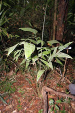| Field notes | Acaulescent rosette-palm. Leaves 9 per stem; sheath 32cm, open; petiole 58cm, green; rachis 44cm; lamina 64 x 56cm; pinnae 6 per side, basal 39cm, middle 37cm, apical 35cm; peduncular bract 23cm long, soft, brown; peduncle 118cm long, 0.4cm thick; rachis 19cm long, 1cm thick, unbranched. Transect HB336-SU20. |