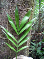 | Field notes | Ascending palm. Stem 24cm long, 0.5cm thick. Leaves 4 per stem; sheath 5cm, closed; petiole 19cm, green; rachis 8cm; lamina 15 x 14cm; pinnae 5 per side, basal 6cm, middle 9cm, apical 11cm. Sterile voucher. Transect HB337-SU33. |