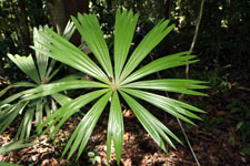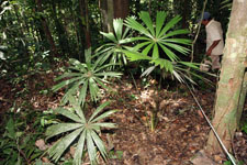 | Field notes | Juvenile fan-palm. Leaves 8 per stem; petiole 117cm, green; lamina 47 x 88cm, palmate; segments 12, each one 45cm long. Sterile voucher. Transect HB339-SU01. |