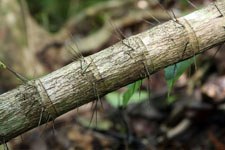 | Field notes | Erect palm tree. Stem 6m long, 5cm thick; spines 4cm long, black. Leaves 20; sheath 50cm, open; petiole 30cm, margined, green; rachis 180cm; lamina 205 x 75cm; pinnae 16 per side, basal 30cm, middle 30cm, apical 30cm. Sterile voucher. Transect HB339-outside SU29. |