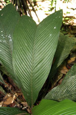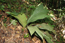 | Field notes | Acaulescent palm. Leaves 11 per stem; sheath 8cm, closed; petiole 7cm, margined; rachis 60cm; lamina 80 x 37cm, entire. Inflorescence interfoliar; prophyll 11cm long; peduncular bract 19cm long, soft, brown, inserted at the base. Transect HB339-SU55. |