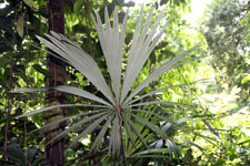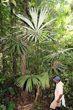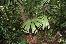 | Field notes | Fan palm. Stem 0.7m long, 8cm thick. Leaves 10 per stem; sheath 33cm, closed; petiole 175cm, margined, green; lamina 75 x 130cm, palmate; segments 16. Sterile voucher. Transect HB340-SU24. |