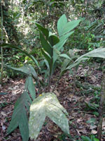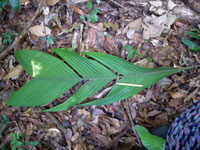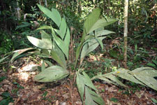 | Field notes | Acaulescent, solitary palm. Leaves 10 per stem; sheath 32cm long, open; petiole 34cm, margined; rachis 95cm; lamina 120 x 50cm; pinnae 3 per side, basal 33cm, middle 34cm, apical 34cm. Inflorescence interfoliar; prophyll 6cm long; peduncular bract 31cm long, brown, inserted at the base; peduncle 115cm long, 0.4cm thick, smooth; Flowers sunken. Transect HB341-SU05. |