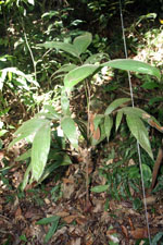 | Field notes | Small understory palm. Stem 0.4m long, 1.5cm thick; spines 0.4cm long, black. Leaves 9 per stem; sheath 10cm, closed; petiole 20cm, green; rachis 20cm; lamina 40 x 35cm; pinnae 3 per side, basal 18cm, middle 18cm, apical 26cm. Sterile voucher. Transect HB341-SU70. |