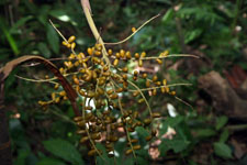 | Field notes | Understory palm. Roots 150, 50cm long, 0.4cm thick. Stem 8m long, 2.5cm thick. Leaves 7 per stem; sheath 33cm, closed; petiole 41cm, round, green; rachis 60cm; lamina 74 x 68cm; pinnae 6 per side, basal 17cm, middle 30cm, apical 17cm. Prophyll 17cm long; peduncular bracts 2, 26cm long, brown; peduncle 42cm long, 0.8cm thick; rachis 14cm long, branched to 1st order; rachillae 28, 20cm long, 0.4cm thick; flowers sessile. Transect HB341-SU75. |