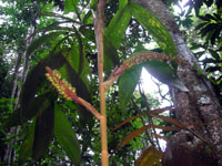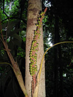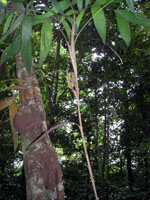 | Field notes | Cespitose understory palm. Stem 2.5m long, 1cm thick. Leaves 10 per stem; sheath 15cm, closed; petiole 26cm, margined, green; rachis 48cm; lamina 66 x 38cm; pinnae 4 per side, basal 23cm, middle 28cm, apical 22cm. Infructescence infrafoliar; prophyll 9cm long, brown, inserted at the base; peduncle 8cm long, 0.7cm thick; rachis 24cm long, 1cm thick, unbranched; flowers sunken. Transect HB343-SU26. |