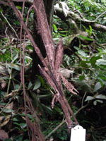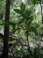 | Field notes | Cespitose understory palm. Stem 1.5m long, 1.2 thick; spines 0.4cm long, black. Leaves 6 per stem; sheath 13cm, closed; petiole 25cm, green; rachis 26cm; lamina 42 x 34cm, hairy below; pinnae 3 per side, basal 25cm, middle 26cm, apical 25cm. Inflorescence infrafoliar; prophyll 4.5cm long; peduncular bract 12cm long, spiny, brown, inserted at the base; peduncle 6cm long, 0.3cm thick, spiny; rachis 0cm, branched to 1st order; rachillae 2, 4.5cm long, 0.2cm thick. Transect HB343-SU29. |