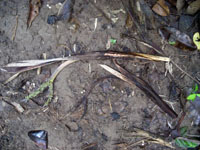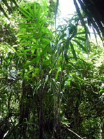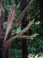 | Field notes | Cespitose palm. Stem 0.9m long, 4cm thick; spines 6cm long, light brown. Leaves 7 per stem; sheath 50cm, open; petiole 105cm, round, brown; rachis 196cm; lamina 229 x 120cm; pinnae 23 per side, basal 65cm, middle 48cm, apical 38cm. Inflorescence infrafoliar; prophyll 30cm long, 2.5cm wide; peduncular bract 49cm long, woody with spines, brown; peduncle 40cm long, 1.5cm thick; rachis 0cm, branched to 1st order; rachillae 2, 9cm long, 1cm thick; flowers sessile. Transect HB345-SU09. |