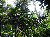 | Field notes | Cespitose palm. Stem 1.2m long, 6cm thick; spines 2.5cm long, yellow. Leaves 8 per stem; sheath 39cm, open; petiole 116cm, round, green; rachis 126cm; lamina 260 x 104cm; pinnae 19 per side, basal 47cm, middle 56cm, apical 45cm. Inflorescence interfoliar; prophyll 23cm long, 3cm thick; peduncular bract inserted 8cm from base; peduncle 31cm long, 1.3cm thick; rachis 0cm, branched to 1st order; rachillae 2, 10cm long, 0.8cm thick; flowers sessile. Transect HB345-SU30. |