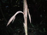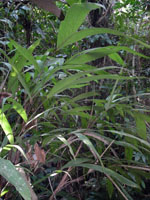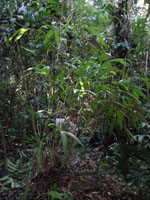 | Field notes | Cespitose understory palm. Stem 1.2m long, 1.5cm thick; spines 4cm long, black. Leaves 6 per stem; sheath 8cm, closed; petiole 15cm, green; rachis 34cm; lamina 59 x 36cm; pinnae 3 per side, basal 26cm, middle 28cm, apical 32cm. Inflorescence infrafoliar; peduncular bract 4cm long, soft, brown with spines; peduncle 7cm long, 0.4cm thick with smooth; rachis 3cm, 0.4 thick, unbranched; flowers sessile. Transect HB346-SU20. |