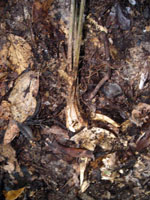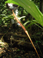 | Field notes | Acaulescent rosette-palm. Leaves 10 per stem; sheath 11cm long, open; petiole 39cm, margined, green; rachis 27cm; lamina 44 x 34cm; pinnae 3 per side, basal 21cm, middle 22cm, apical 20cm. Peduncle 54cm long, 0.3cm thick; rachis 10cm long, 0.8cm thick, unbranched. Transect HB346-SU36. |