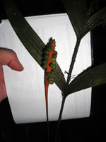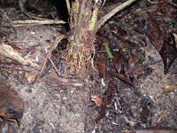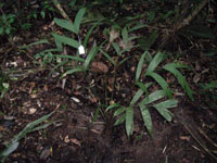 | Field notes | Acaulescent rosette-palm. Leaves 8 per stem; sheath 10cm long, open; petiole 46cm, margined, green; rachis 34cm; lamina 51 x 42cm; pinnae 4 per side, basal 24cm, middle 28cm, apical 24cm. Infructescence interfoliar; peduncular bract 15cm long, soft, brown; peduncle 46cm long, 0.2cm thick; rachis 8cm long, 0.8cm thick, unbranched. Transect HB346-SU55. |