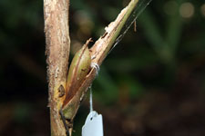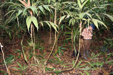 | Field notes | Cespitose, erect or ascending, understory palm. Stem 2m long, 2cm thick. Leaves 13 per stem; sheath 10cm, open; petiole 32cm, margined, green; rachis 50cm; lamina 70 x 24cm; pinnae 3 per side, basal 38cm, middle 43cm long, apical 38cm. Inflorescence infrafoliar; prophyll 5cm long; peduncular bract 3cm long, soft, hairy, green, inserted 1cm from base; peduncle 6cm long, 0.5cm thick; rachis 3cm long, branched to 2nd order; rachillae 15, 7cm long, 0.2 thick. Transect HB350-SU50. |