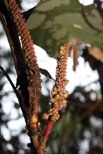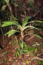 | Field notes | Cespitose, erect, understory palm. Stem 2m long, 2cm thick. Leaves 7 per stem; sheath 10cm, open; petiole 10cm, margined, green; rachis 58cm; lamina 69 x 23cm, entire, bifid. Inflorescence infrafoliar; prophyll inserted 2cm from the base; peduncle 5cm long, 1cm thick; rachis 16cm long, 2cm thick, unbranched. Flowers sunken, white. Transect HB351-SU89. |