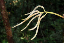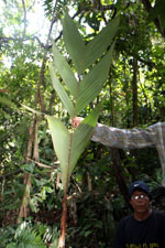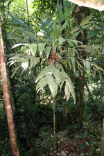 Field notes Solitary, erect, understory palm. Stem 4.5m long, 4cm thick. Leaves 20 per stem; sheath 27cm, open; rachis 90cm; lamina 112 x 40cm; pinnae 4 per side, basal 50cm, middle 45cm, apical 45cm. Prophyll 19cm long, 3cm thick; peduncular bract 30cm long, soft, brown; peduncle 41cm long, 1cm thick; rachis 7cm long, branched to 1st order; rachillae 6, 30cm long, 1cm thick; flowers sunken, white. Transect HB352-SU04.