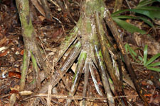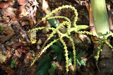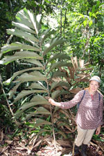 | Field notes | Tree palm. Stiltroots 18, 60cm long, 4cm thick. Stem 8m long, 10cm thick. crownshaft 110cm long. Leaves 7 per stem; sheath 110cm, closed; petiole 48cm, round, green; rachis 207cm; lamina 219 x 140cm; pinnae 13 per side, basal 47cm, middle 80cm, apical 24cm. Prophyll 9cm long, 4cm wide; peduncular bract 21cm long, soft, brown; peduncle 10cm long, 3cm thick smooth; rachis 11cm long, branched to 1st order; rachillae 8, 40cm long, 2cm thick; flowers sessile, yellow. Transect HB352-outside SU22. |