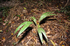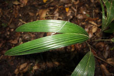 | Field notes | Juvenile, acaulescent rosette. Leaves 4; sheats 16cm, open; petiole 30cm, round, green; rachis 17cm long; lamina 34 x 12cm, entire, bifid. Sterile voucher. Transect HB354-SU06. |