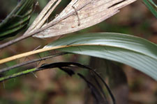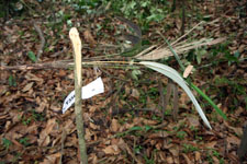 | Field notes | Juvenile rosette. Leaves 5; sheats 16cm, open, spines 1cm long, black; petiole 16cm, green; rachis 15cm long; lamina 27 x 11cm, entire, bifid. Sterile voucher. Transect HB356-SU68. |