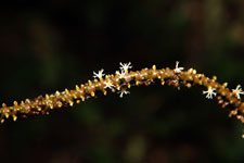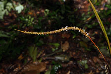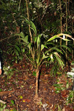 | Field notes | Solitary, erect, understory palm. Roots 80, 15cm long, 0.2cm thick. Stem 0.7m long, 2,5cm thick. Leaves 5 per stem, sheath 24cm, open; petiole 40cm long, margined, green; rachis 65cm; lamina 85 x 35cm; pinnae 3 per side, basal 32cm, middle 27cm, apical 26cm. Inflorescence interfoliar; peduncular bract 22cm long, soft, brown, inserted at the base; peduncle 35cm long, 0.4cm thick; rachis 30cm long, 0.5cm thick, unbranched; flowers sunken, white. Transect HB358-SU88. |