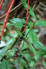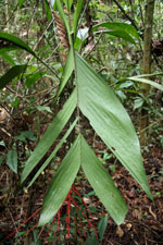 | Field notes | Understory palm. Stem 1 m tall, 1 cm in thick, smooth, cream; internodes 7 cm long. Leaves 7; leaf sheath 19 cm long, closed; petiole 19 cm long, section round; rachis 38 cm long; lamina pinnate, 62 cm long, 50 cm wide, glabrous; pinnae 3 per side; basal pinna 52 cm long, middle pinna 48 cm long, apical pinna 48 cm long. Infructescence: peduncle 7 cm long, 0.8 cm wide; rachis 10 cm long, 0.5 cm wide; rachillae 13, 28-33 cm long. Fruits 0.6 x 0.6 cm, black. Transect HB140, subunit no. 052, inside transect; UTM: 20K-311166-8107987 |