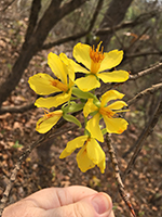 | Field notes | Small tree, 10 cm in diameter, 5 m tall branching from the ground, flowers bright yellow. |