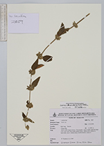 Herb; in hill evegreen forest. Stem angular. Leaves simple, opposite; blade ovate; apex acute; base round; margin serrate. Inflorescence cymose in leave-axils; calyx 5, tubular, hairy; corolla bilabiate; stamen 4.